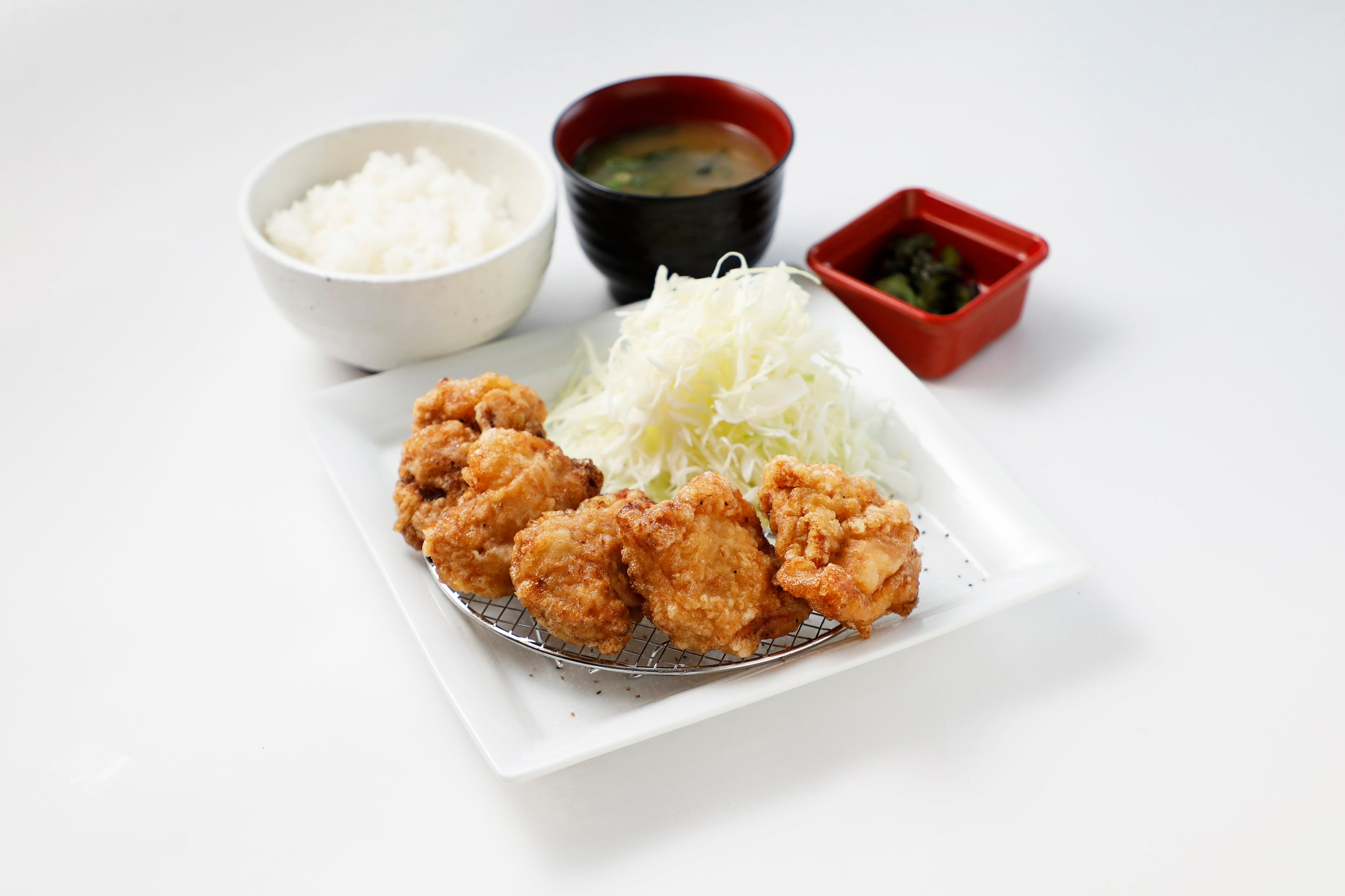 からあげグランプリ®11年連続金賞受賞中の秘伝のタレを使用した「もも肉」のからあげ。独自製法で揚げる事でサクふわジューシーな食感をお楽しみいただけるボリューム満点な定食です。無料でご飯を大盛に変更できます。