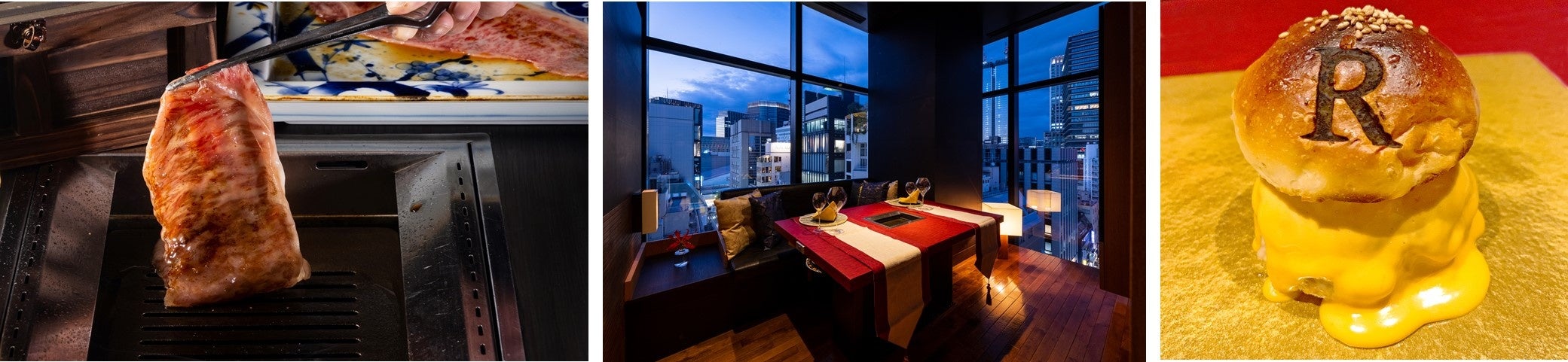 ズワイガニと和牛を使った前菜に始まり、厳選したタンや和牛の旨味を堪能いただける焼き物(塩・タレ)と続きます。メインには、特製パティを焼き上げ、雲丹と2種類のチーズをバンズにはさんだ『R特製ハンバーガー 雲丹とWチーズのソース』をお楽しみください。最後に本日のデザートをお召し上がりいただきます。