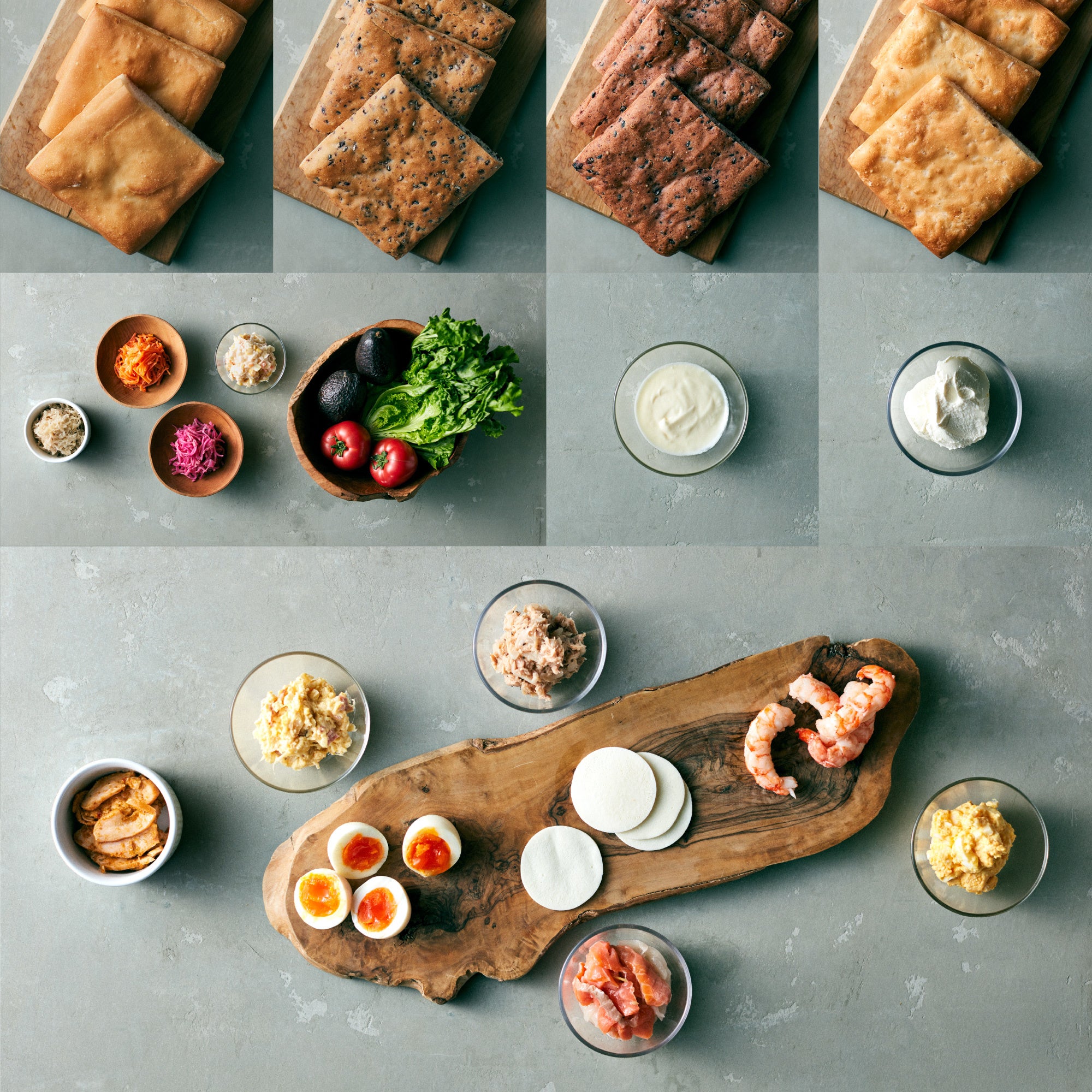 こだわり抜いた食材と、サーモンマリネやポテサラなど手作りの具材をあなた好みに組み合わせて、スペシャルなサンドウィッチを。まるで小麦を使用したパンのような、食感とボリューム感をぜひ味わってみてください。