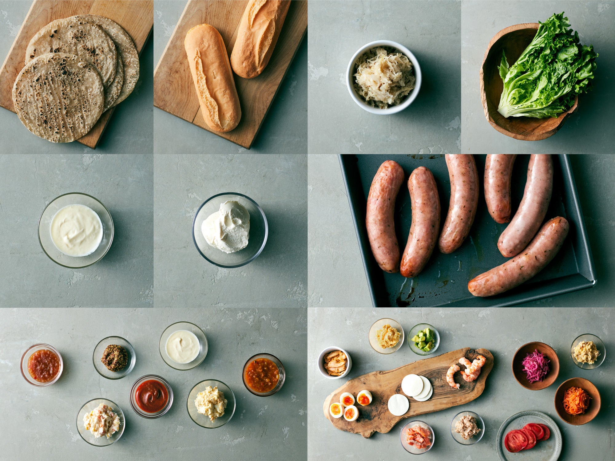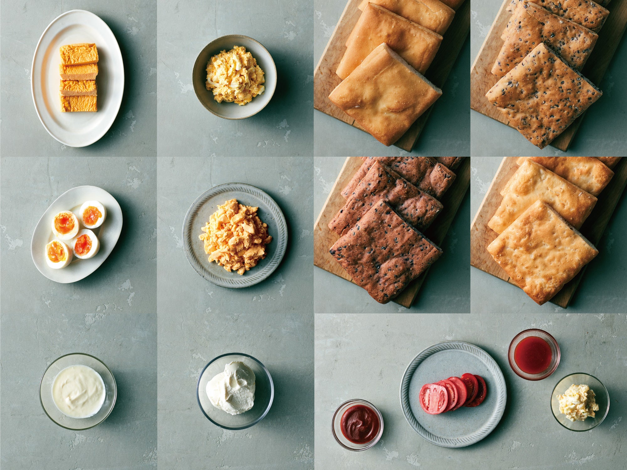 4種類のたまごにパン、マヨネーズなど、加えるソースも小麦を一切含まず手作りで。