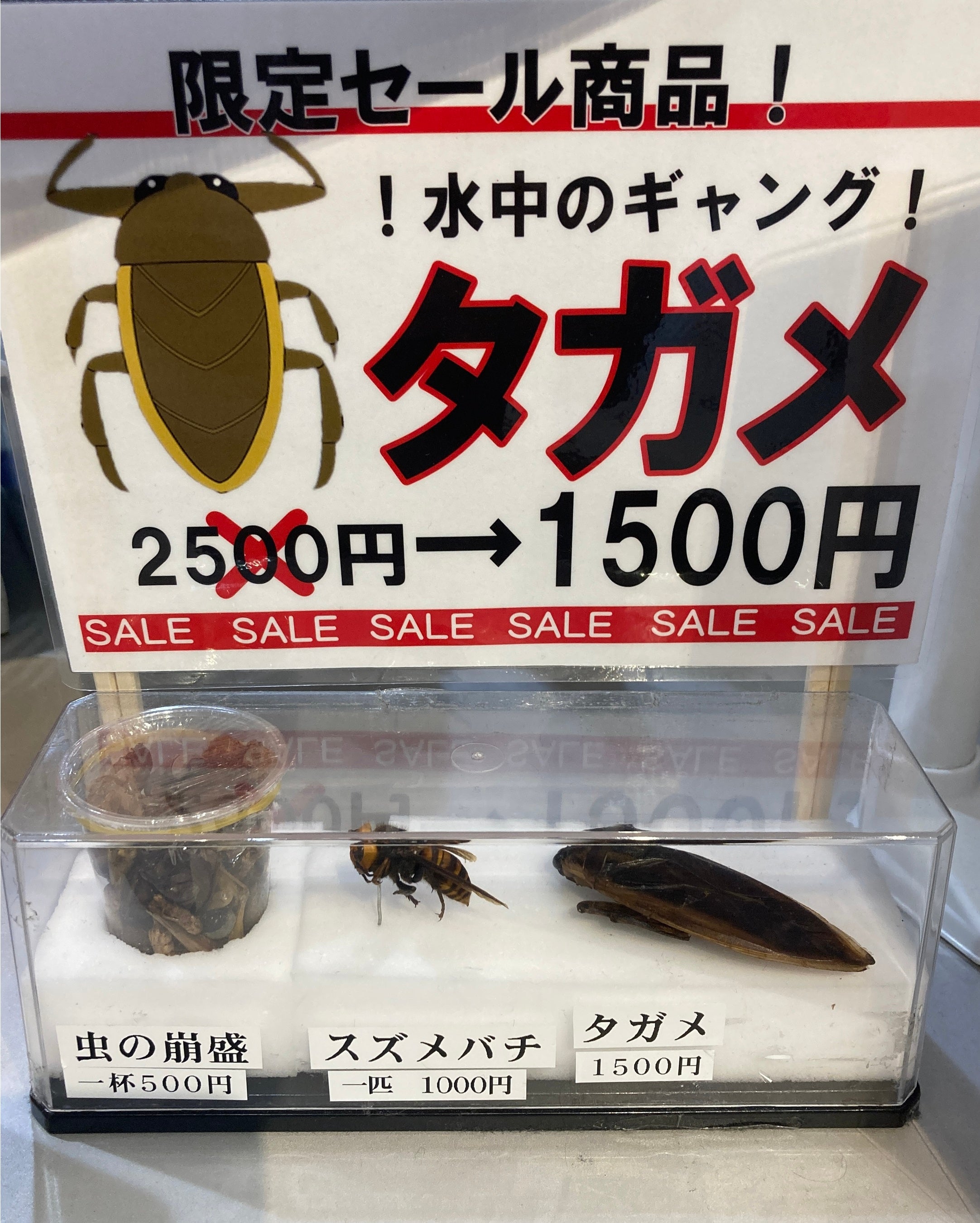 ・食用昆虫(タガメ 2,500円/スズメバチ 1,000円/虫の崩盛 500円)