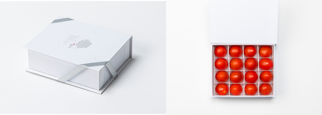 「OSMIC FIRST」シリーズは、収穫後に1つ1つ糖度を測定し、11以上を満たすものだけに許された贅沢なトマトです。特別感のある甘さは、暮らしにちょっとの豊かさを与えてくれたり、1人の時間が少し贅沢になったり、