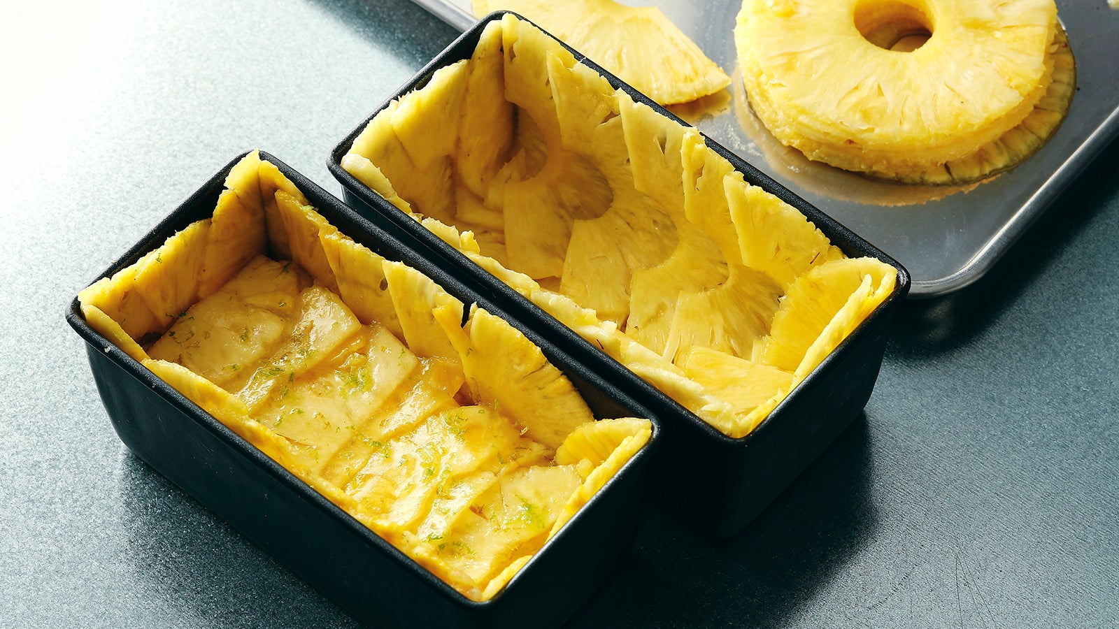繊維がしっかりしているパイナップルは、加熱しても食感を保つことができます。「果肉がやわらかい洋梨やいちじくではこうはいかない」と、コンティチーニも語っていますが、彼のスイーツにおいては、味はもちろんのこと、食感と見た目のハーモニーもまた、おいしさの要素なのです。