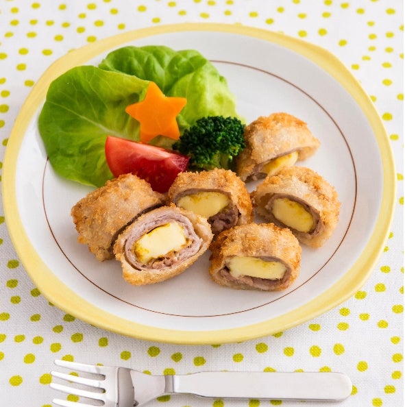 カレー風味でチーズがとろーり。薄切り肉で食べやすいカツは、子どもにも大人気です。