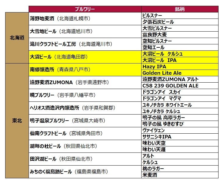 ※黄色い枠が今回の新規追加ブルワリーです