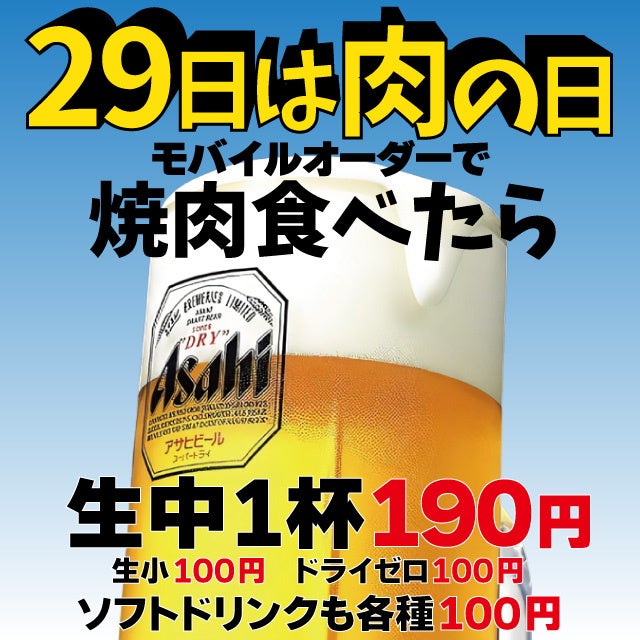 今月のイベントでは、焼肉のお供にピッタリの”生ビール”などをイベント価格にて提供いたします!