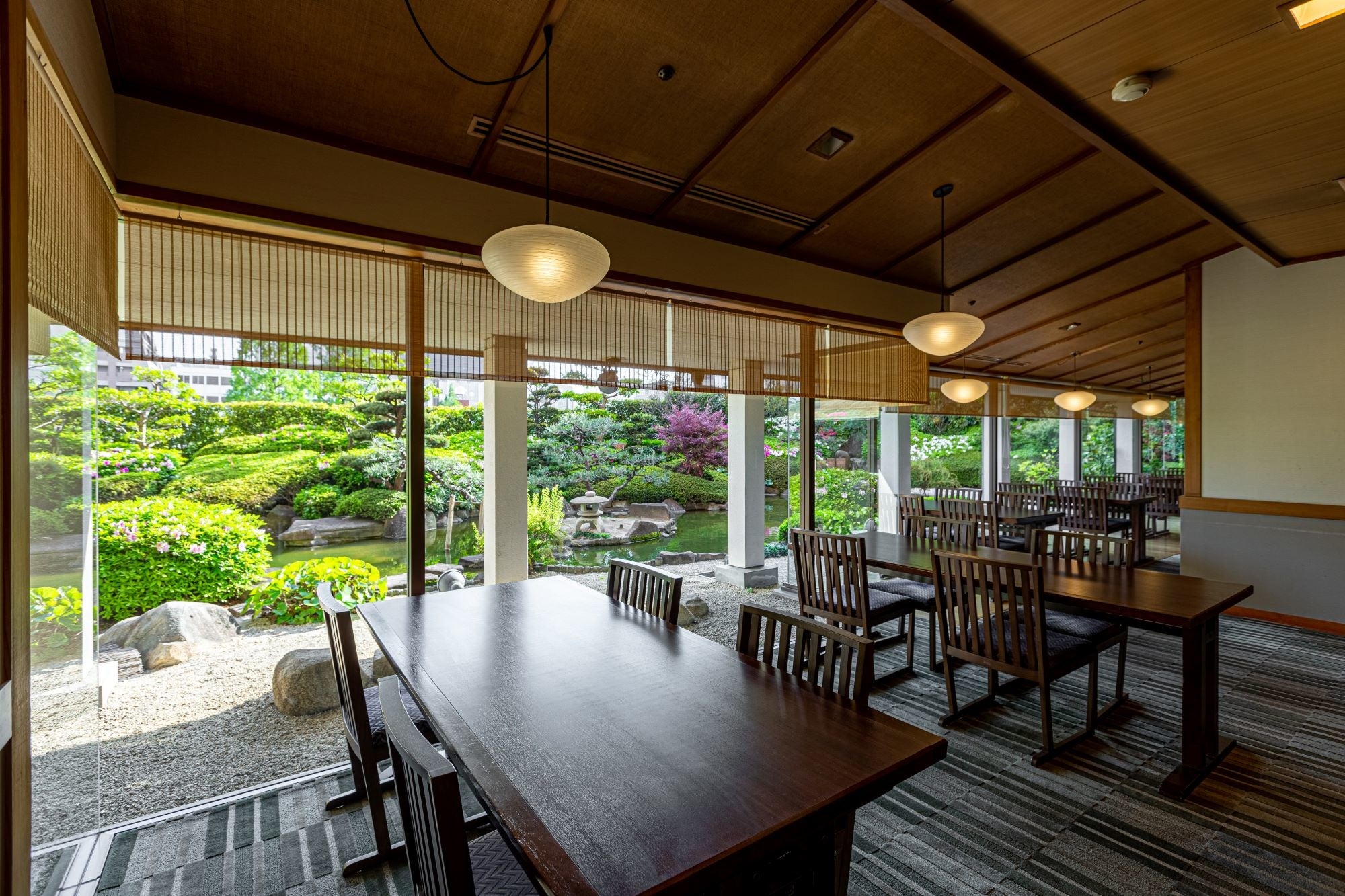 広島の縮景園を模した優美な日本庭園の新緑を眺めながら、都会の喧騒を忘れて寛ぎのひとときをお愉しみください。
