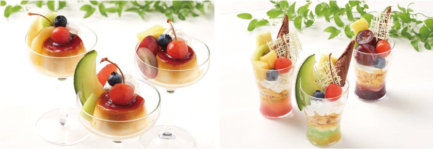 懐かしい気持ちを思い出させてくれるプリンアラモードとフルーツパフェに季節のフルーツをトッピング。
