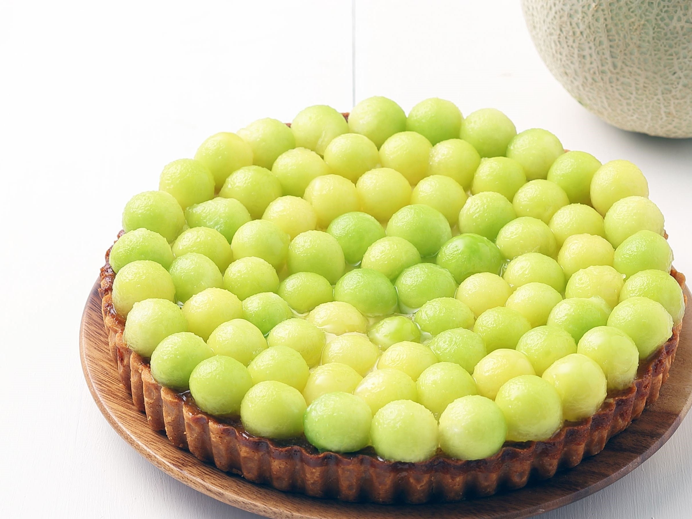 兵庫県産の完熟メロンを可愛らしくボール状にくり抜き彩られたメロンタルト。