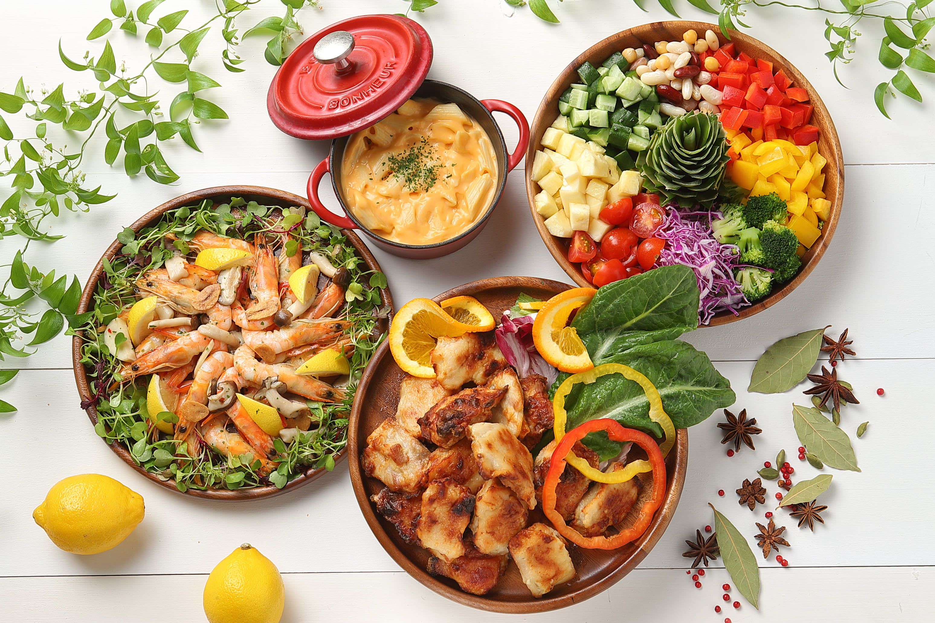 ハワイをテーマに彩られた「ハワイアンチョップドサラダ」「ガーリックシュリンプ」「フリフリチキン」などは、見た目も華やかで夏気分を満喫させてくれます。そのほか、いつもスィーツブッフェで好評をいただいておりますタイ出身のシェフ・トイによるオリジナルカレーも登場します。