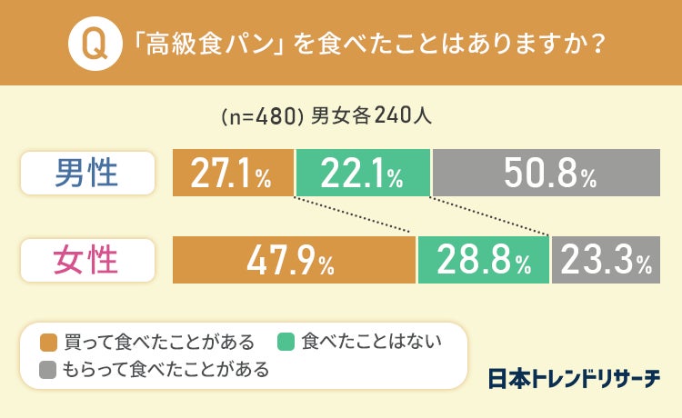 初めに、これまでに「高級食パン」を食べたことがあるか聞きました。