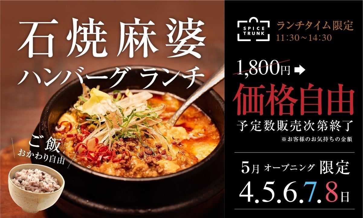 GW期間限定で石焼麻婆ハンバーグランチをお客さまの任意の“お気持ちの金額”(0円でもOK)でご提供するキャンペーンを実施いたします(通常価格:1800円)