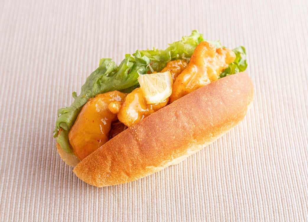 大分県の名物「とり天」をキャベツ・レタスと一緒にサンド。