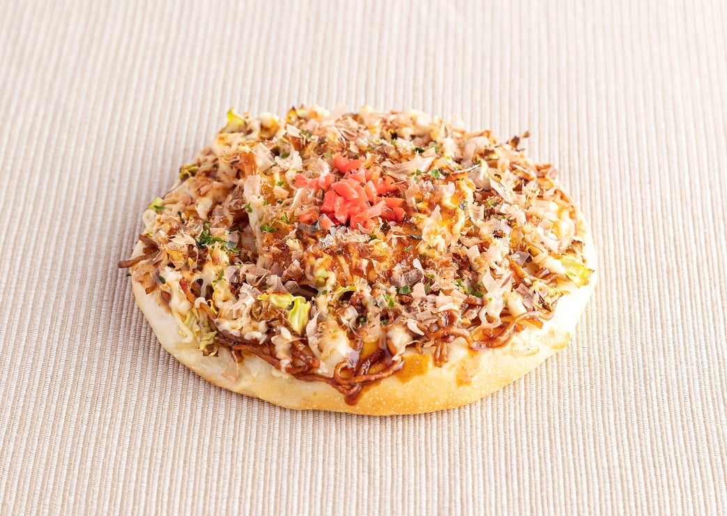 広島県のソウルフード「広島風お好み焼き」をイメージし、焼きそばとキャベツ入りのパンの上に豚肉を盛りつけ、まるでお好み焼きのようにボリューム満点に仕上げました。