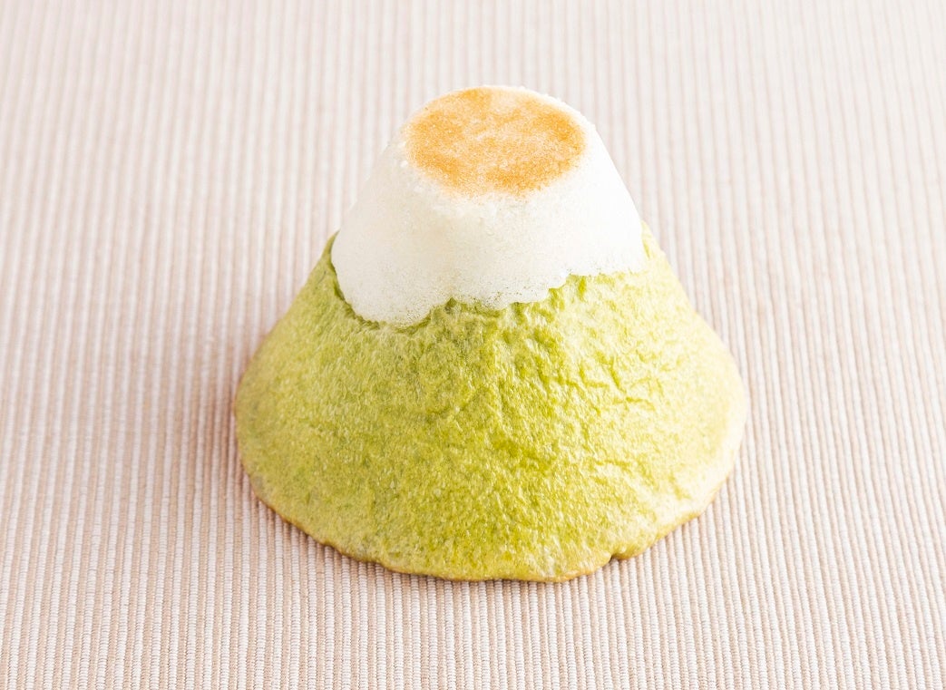 メロンパンの皮で雪を降らせ、雄大にそびえ立つ富士山のように焼き上げました。