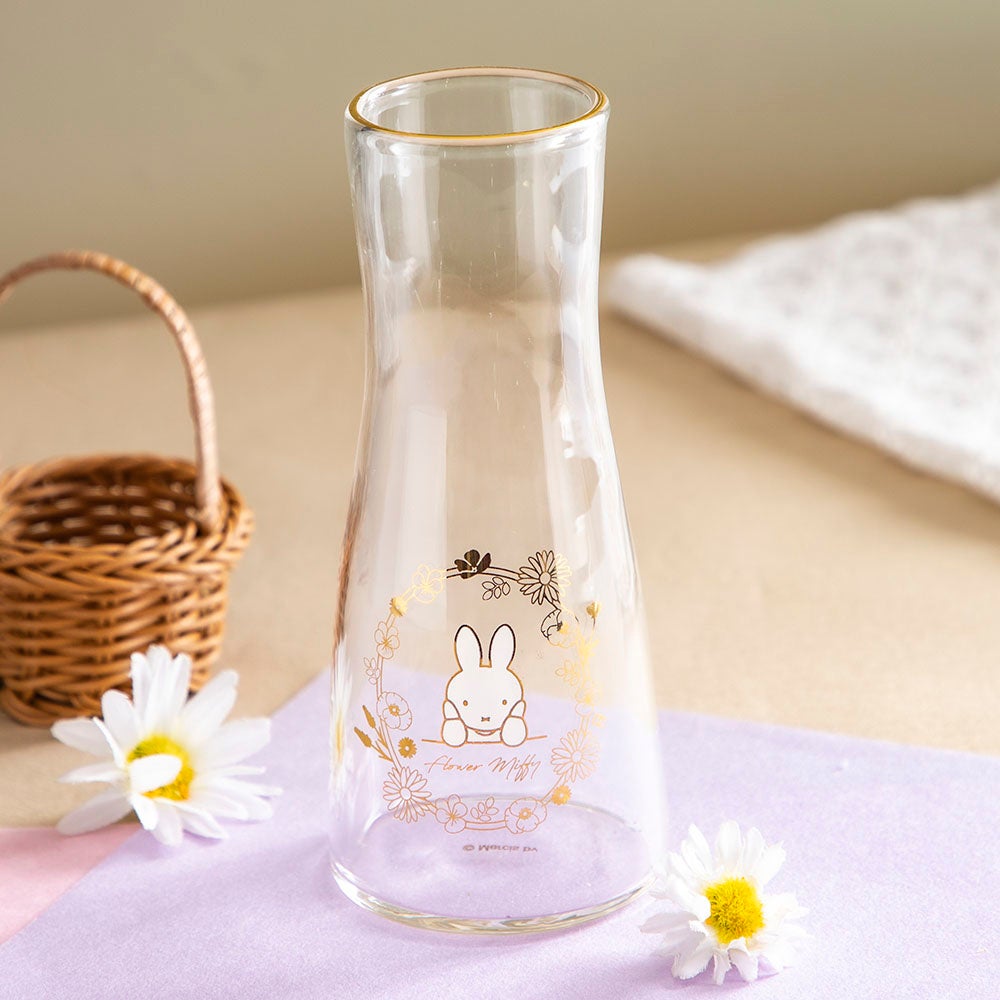 お花の窓枠から物思いにふけるようなミッフィーが可愛い、ガラス花瓶も発売中です。金色のプリントが大人っぽく、主張しすぎないデザインで、お花を飾ってお楽しみいただけます。