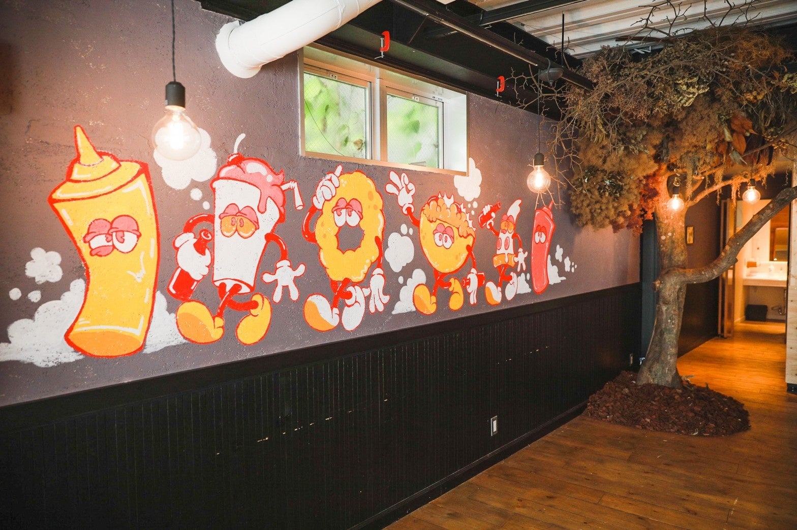 海外のストリート・アートを彷彿とさせる、壁一面に描かれたポップなウォールアートが目印。友人と集まって豪快な盛り付けの料理を囲めば、パーティーのようにウキウキと楽しい気分に!
