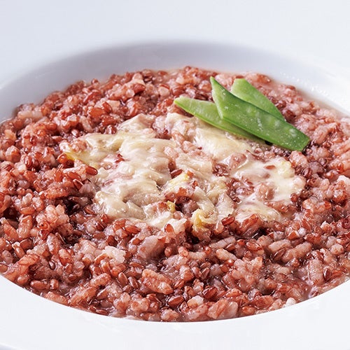 ぷちぷちした食感の赤米とほんのり甘い白米を混ぜ合わせた、米の旨み引き立つ一皿。ふわりと広がるバターの香り、チーズの塩気が食欲をそそります。きぬさやが彩りのアクセントに。