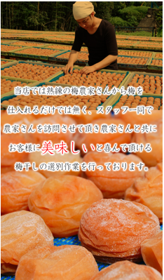 改善するため、直接自身の目で見て、体感して本当に良い商品のみを仕入れをすると決めた南様。梅のことをほとんど知らなかった南様は、休日を返上し、自身も付き合いのある梅農家で1年以上の修業を行い、生産者の想いを知ることとなった。