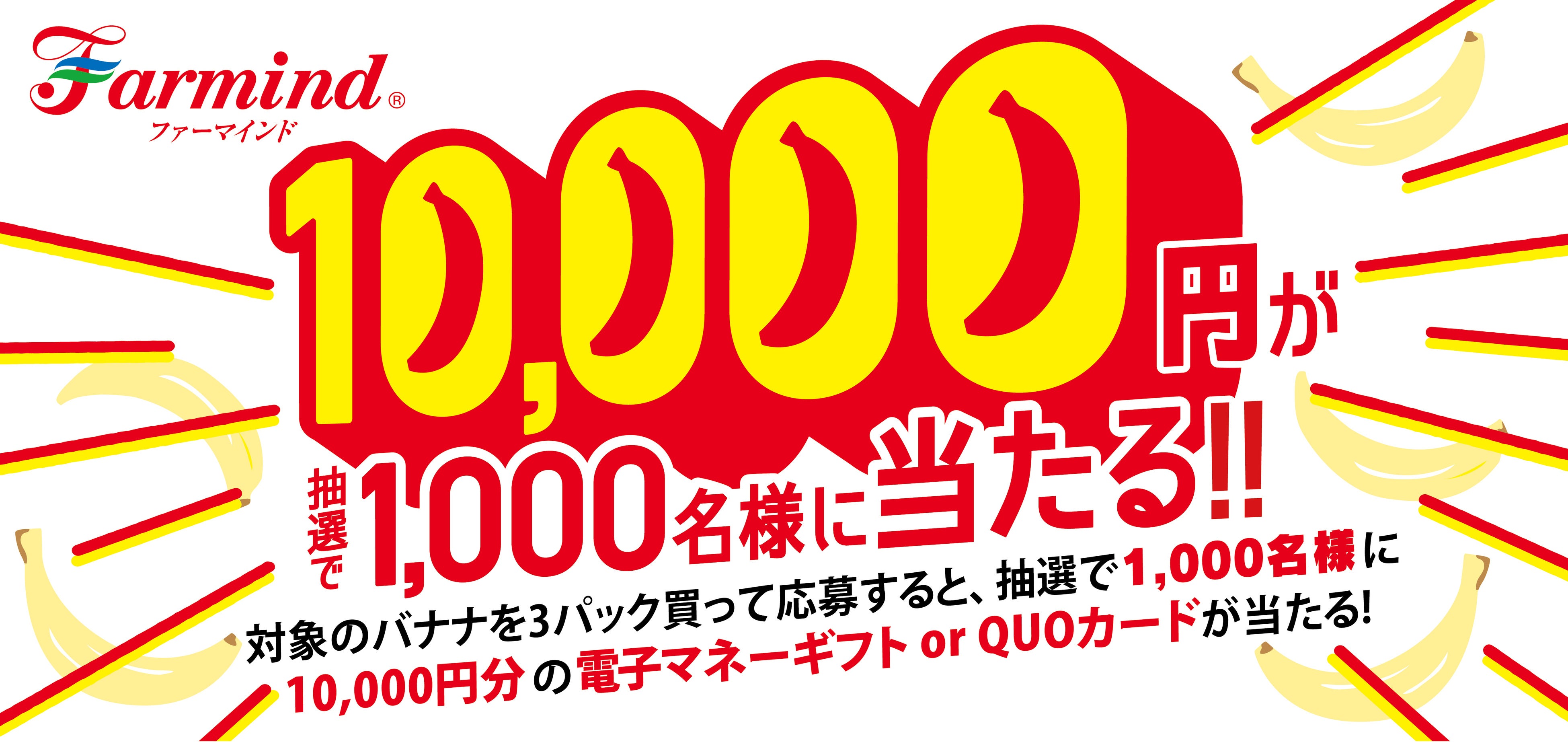甘くておいしいバナナを味わいながら、10,000円分の当選を目指して是非チャレンジしてみてください。