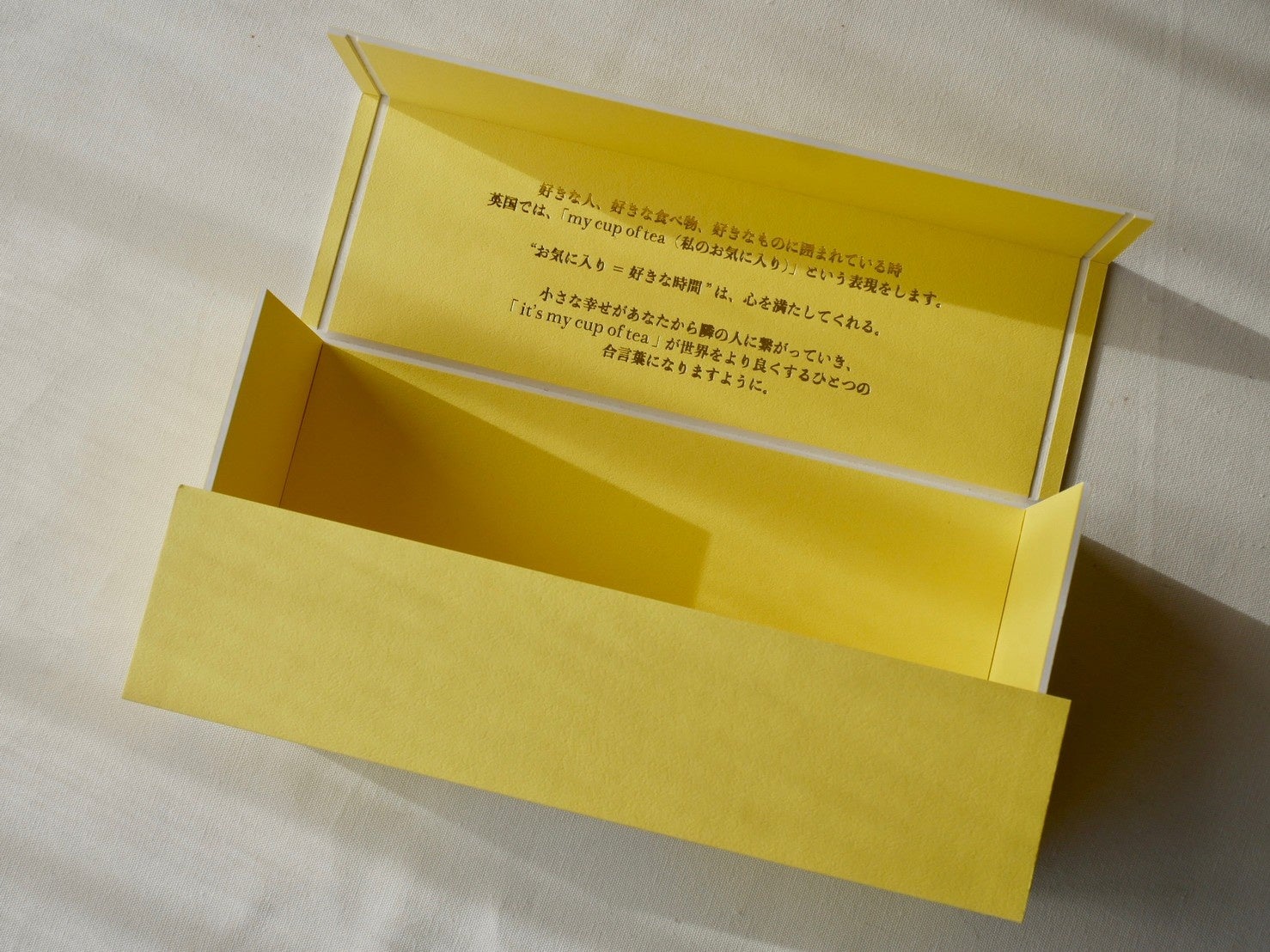 it’s my cup of tea のパッケージは、牛乳パックの再生紙から生まれた紙のパッケージです。北海道のパッケージ制作会社と何度も打ち合わせを重ね、デザインから質感、ストーリーに至るまでこだわりが詰まった賜物です。もともとがとても良い紙であり、再利用しない選択はありませんでした。牛乳パックなど飲料用の紙パックは“紙の優等生”と言われるほど、品質の良いパルプを使っています。 工場や家庭で出た紙などをそのまま捨てるのではなく、リサイクル加工した紙パッケージを再利用。エコロジーの視点は、現代に欠かせない観点なので私達の想いもつたわるとうれしいです。