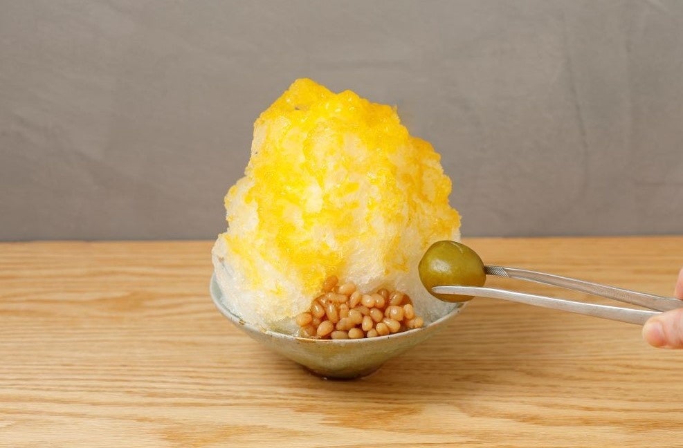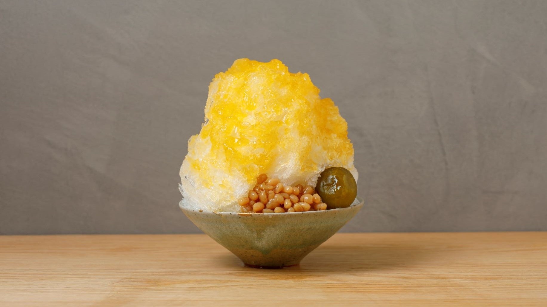 蝶矢の店舗で使われた梅シロップの漬け梅 を使ったかき氷「至極の梅かき氷」をHyss op※1にて提供いたします。 国産梅の肉厚でジューシーな食べごたえと 芳醇な香りを存分に楽しんでいただけま す。無色透明の自家製青紫蘇シロップ、食 感の変化が楽しい白あずきとハト麦スナッ クをトッピング。氷の中に入った自家製サワークリームアイスは程良い塩味が “漬け梅” との相 性抜群です。別添えでご用意する「The CHOYA 至極の梅シロップ」を回しかけると、完熟南 高梅の鮮やかな黄色に変化し、華やかな香りとみずみずしさがプラスされます。 自家製にこだわり、添加物に頼らない食材の力を活かした、まさに「至極の梅かき氷」です。