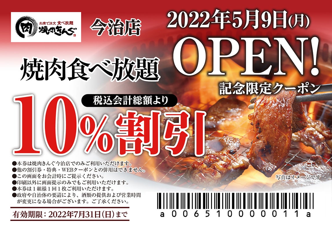 - 『焼肉きんぐ 今治店』が2022年5⽉9⽇(月)グランドオープン!