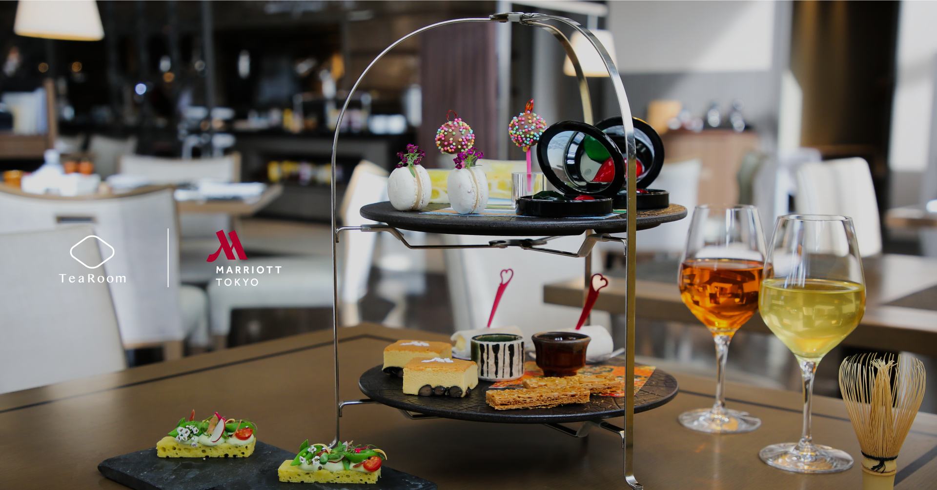 続く第二回として、今回は東京マリオットホテルの人気アフタヌーンティー × 茶道家による茶会を開催いたします。マリオットホテルのシェフ・パティシエがこの日のために特別に用意した遊び心溢れる和・洋を組み合わせたセイボリーやスイーツと、茶道家 岩本宗涼 が代表を務める TeaRoom の提案する日本茶との新たなティーペアリングをテーマに、プレミアムアフタヌーンティーを提供いたします。