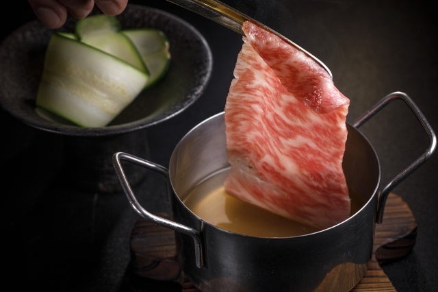 霜降りサーロインをマイルドな牛テールスープでしゃぶしゃぶ仕立てに。牛テールスープを纏って煌くレア気味のサーロインは口福な時間を約束してくれます。