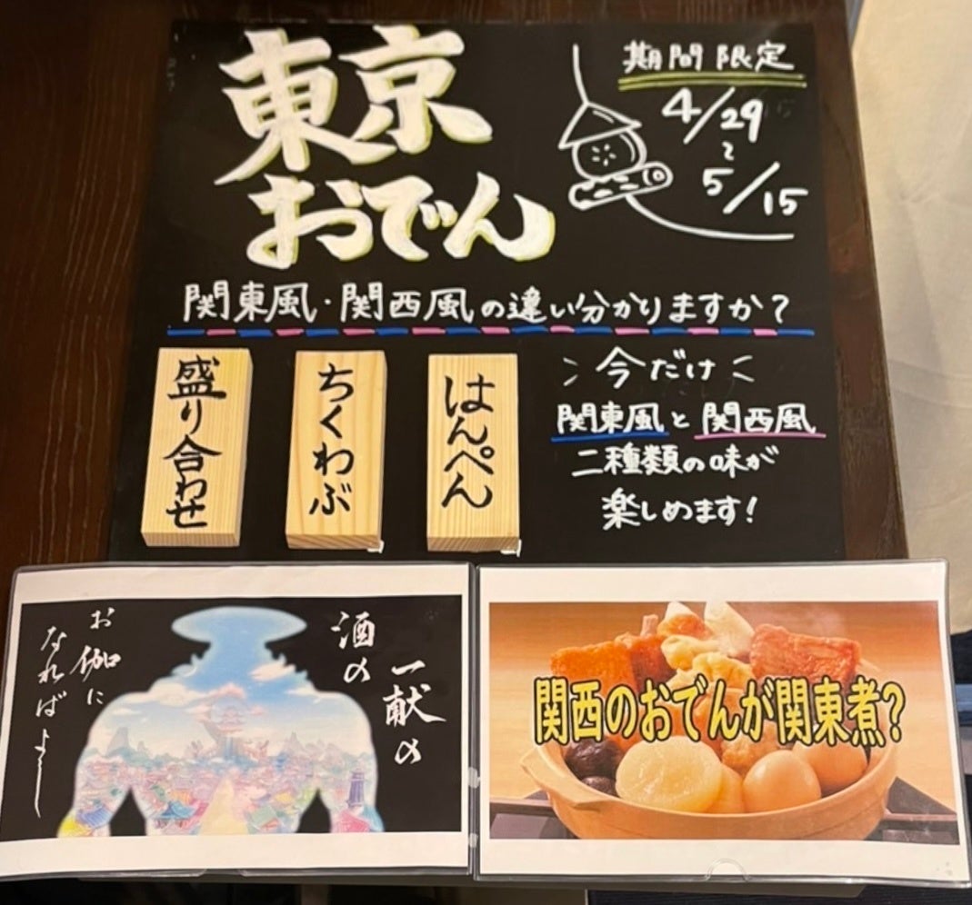 通常提供の関西風おでんに加え、期間限定で関東風おでんを提供いたします。今だけ2種類の味が楽しめますので、ぜひこの機会に食べ比べてみてください。