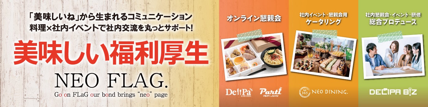 オンライン懇親会向け料理宅配やケータリング、社内コミュニケーション活性化支援サービスを展開する株式会社NEO FLAG.(本社:神奈川県横浜市、代表取締役:新野仁也 以下 当社)は、「第9回働き方改革EXPO[春]」に出展します。