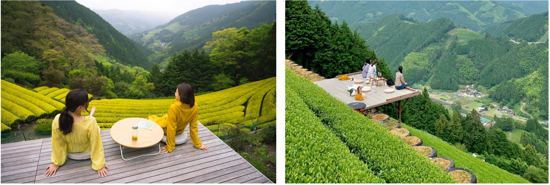 また、美しき茶畑を観光資源として活用したサービス「茶の間」を静岡県内7ケ所で展開。絶景の茶畑にあるウッドデッキテラスを、完全貸切、予約制で提供しています。今後は事業を静岡から日本中の産地に拡大し、個性ある茶葉とつくり手を探し、魅力を広げていきます。