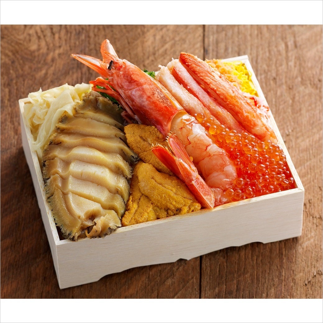 - \人気の北国グルメもずらり。蝦夷アワビなど海鮮をふんだんに盛って。/
