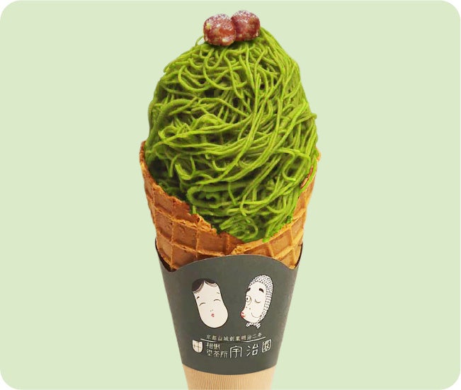 抹茶ソフトクリームに、抹茶モンブランと北海道産小豆をトッピング。