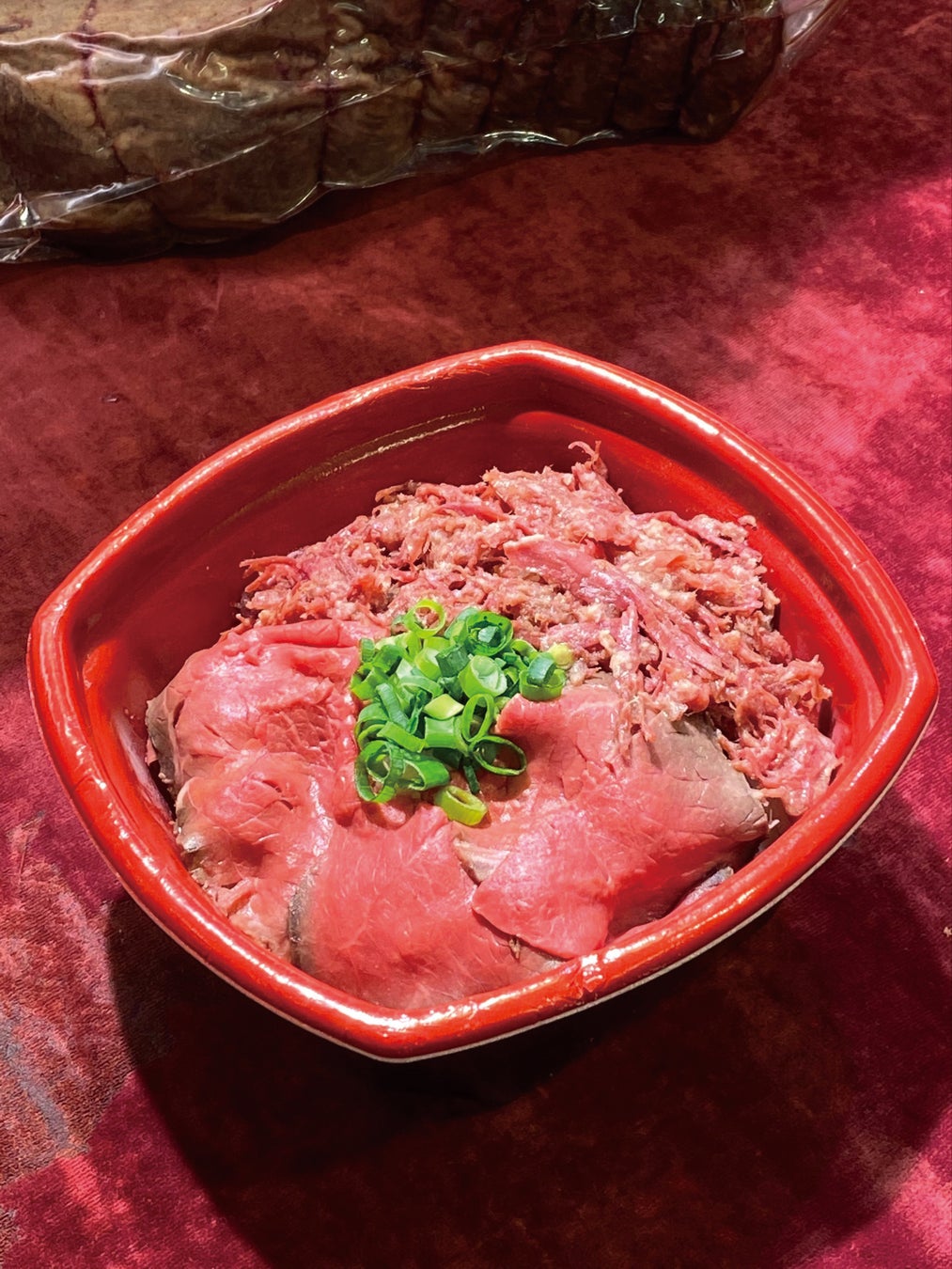 自慢のローストビーフ、コンビーフを丼に仕立てたぜいたくなおいしさ。