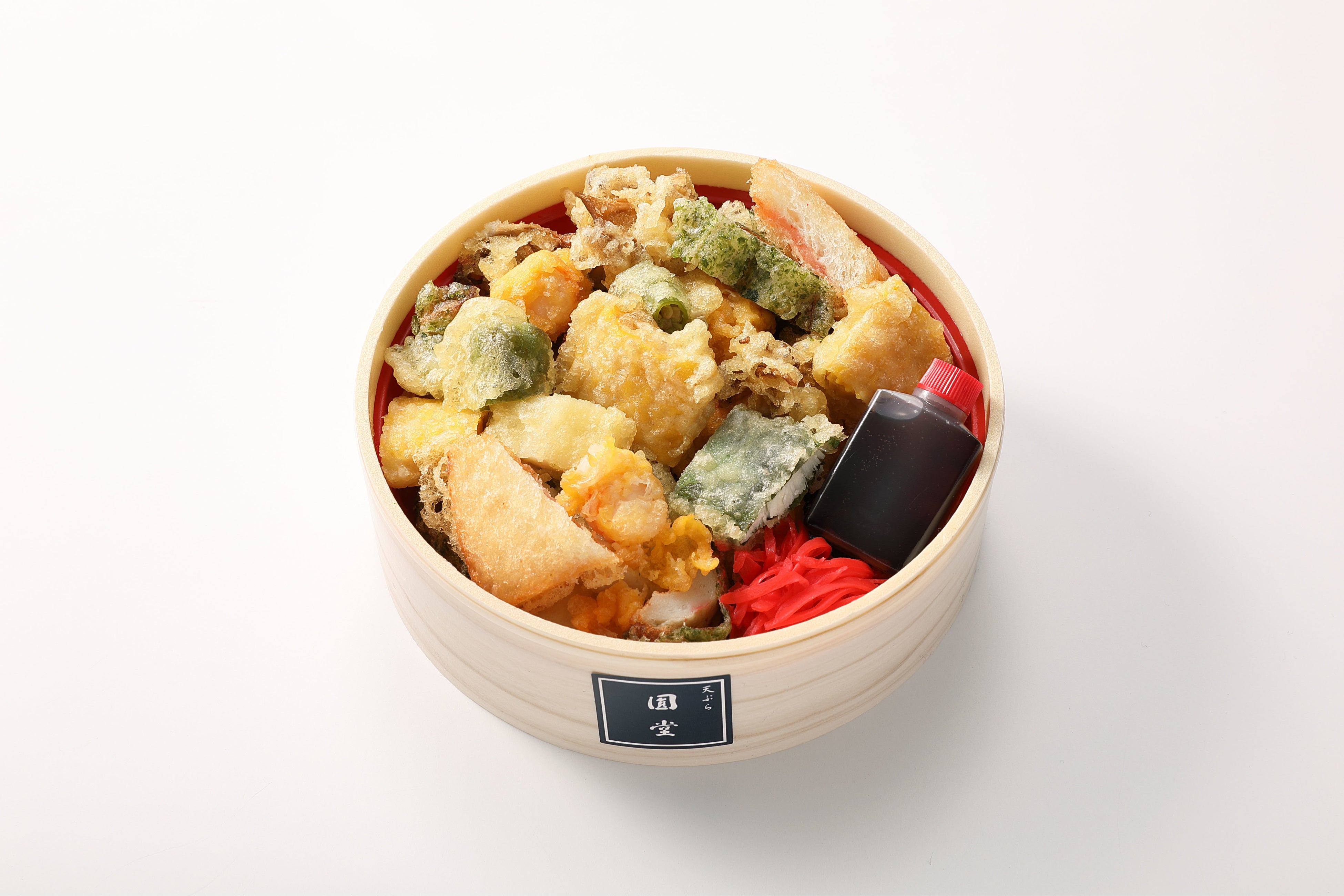 人気の天ぷら八品を彩り良く盛り込みました。特製丼つゆで味付けしたお米との相性も抜群です。