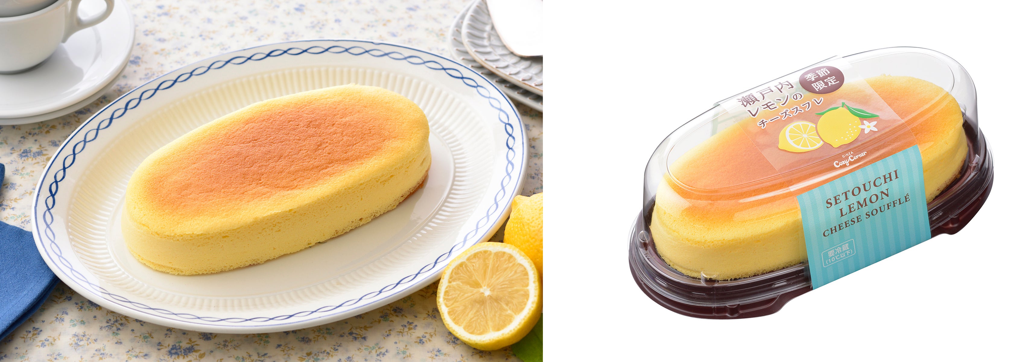 “しっとり、ふわシュワッ”食感♪ 人気のチーズスフレに、すがすがしい香り&まろやかな酸味の「瀬戸内レモン」の果汁を練りこみました。レモンとチーズが織りなす、この時期だけの爽やかな味わいをお楽しみください。