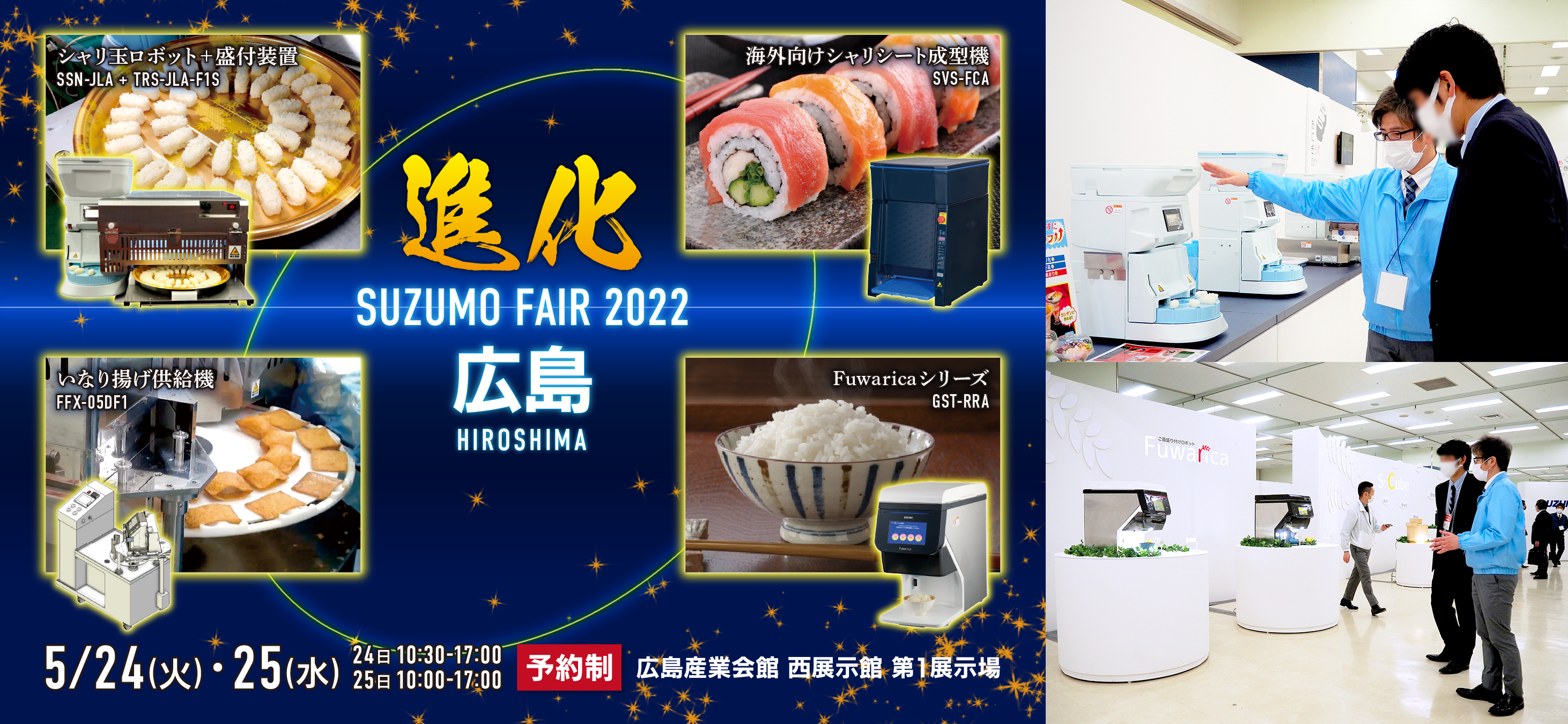 鈴茂器工株式会社(本社:東京都練馬区、代表取締役社長:鈴木美奈子、以下 鈴茂器工)は、2022年5月24日(火)、25日(水)の2日間でスズモフェア2022広島【開催地:広島県立広島産業会館 西展示館 第1展示場】を開催いたします。広島県並びに、中四国エリアの外食・中食・給食関係のお客様およびメディア関係者の皆様に、スズモグループ製品を直接体感していただける機会となっております。皆さまの来場予約を心よりお待ち申し上げます。