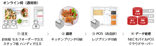 - iPadセルフオーダーとNECモバイルPOSの強みを組み合わせ