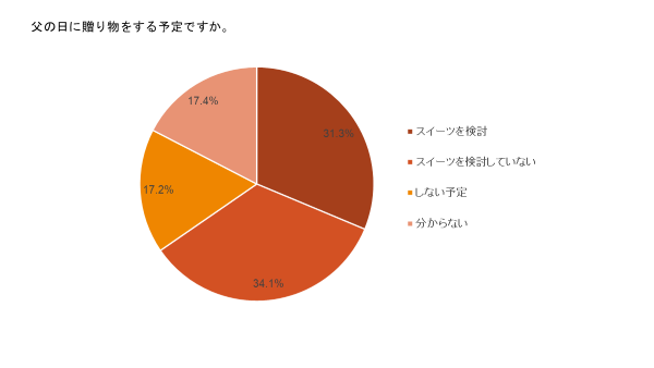 父の日に贈り物をする予定の人のうち、約3人に1人がスイーツの購入を「検討している」・「少し検討している」という結果になりました。