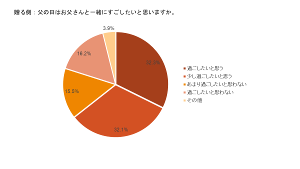 プレゼントを贈る方の内64.4%が、プレゼントを送られる方の内66.7%が父の日には家族と一緒に過ごしたいといった結果になりました。