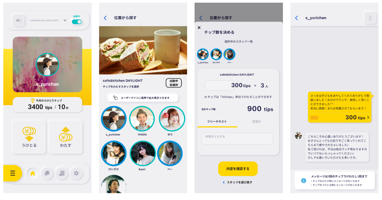 “チップ”という⾔葉にはあまり馴染みがない⽇本ですが、古くからある「お⼼づけ」や「お気持ち」など⽇本⼈らしい形や思いを体現するものです。素敵なサービスを受けたお礼に従業員にチップを渡すことにより、お客さまと従業員の繋がりが強くなり、従業員はさらにサービスの質を向上させようと努めることができます。さらに、本サービスにより[サービス業]全体の価値を⾼めたいとも思っています。