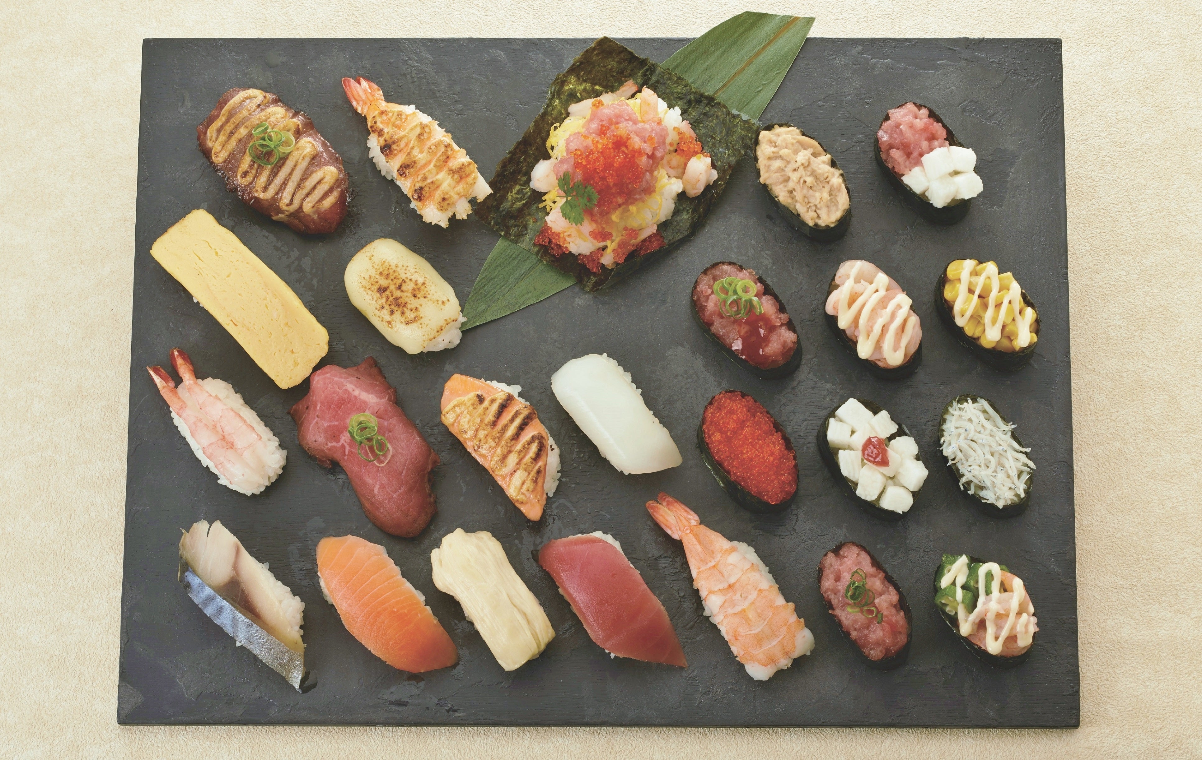 お寿司や牛ロースステーキ、海老天ぷらなどオーダー毎に調理する出来立ての料理など鍋具材と合せて約100種類が食べ放題です!!