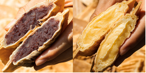 パリッと焼きたて、自家製あんこがたっぷり入った看板商品。