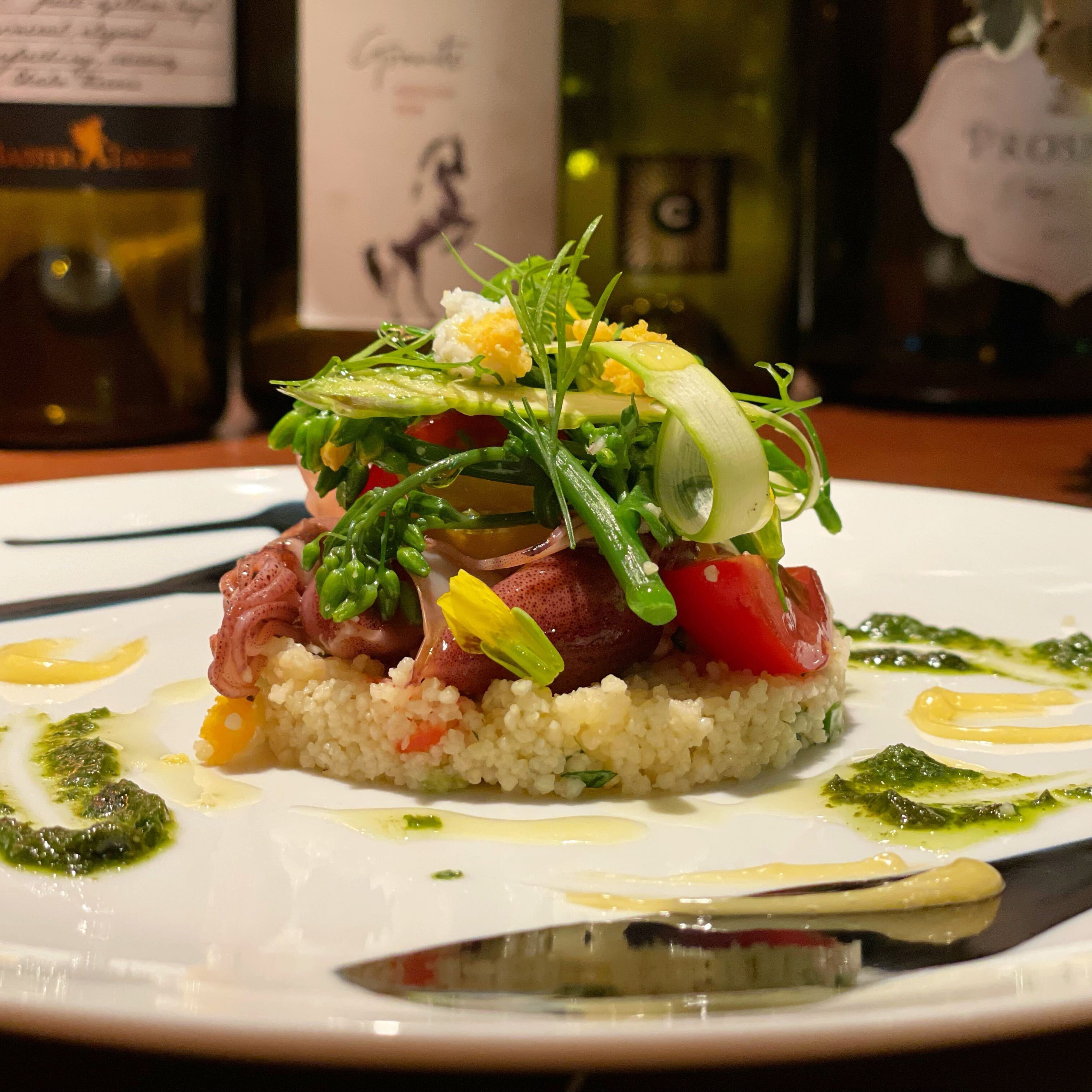 旬のホタルイカをクスクスとサラダ仕立てにしました。