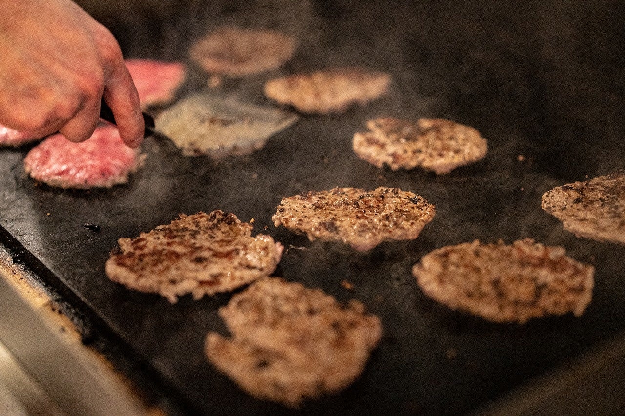 熟成肉をブロックのまま仕入れて粗めにミンチ。