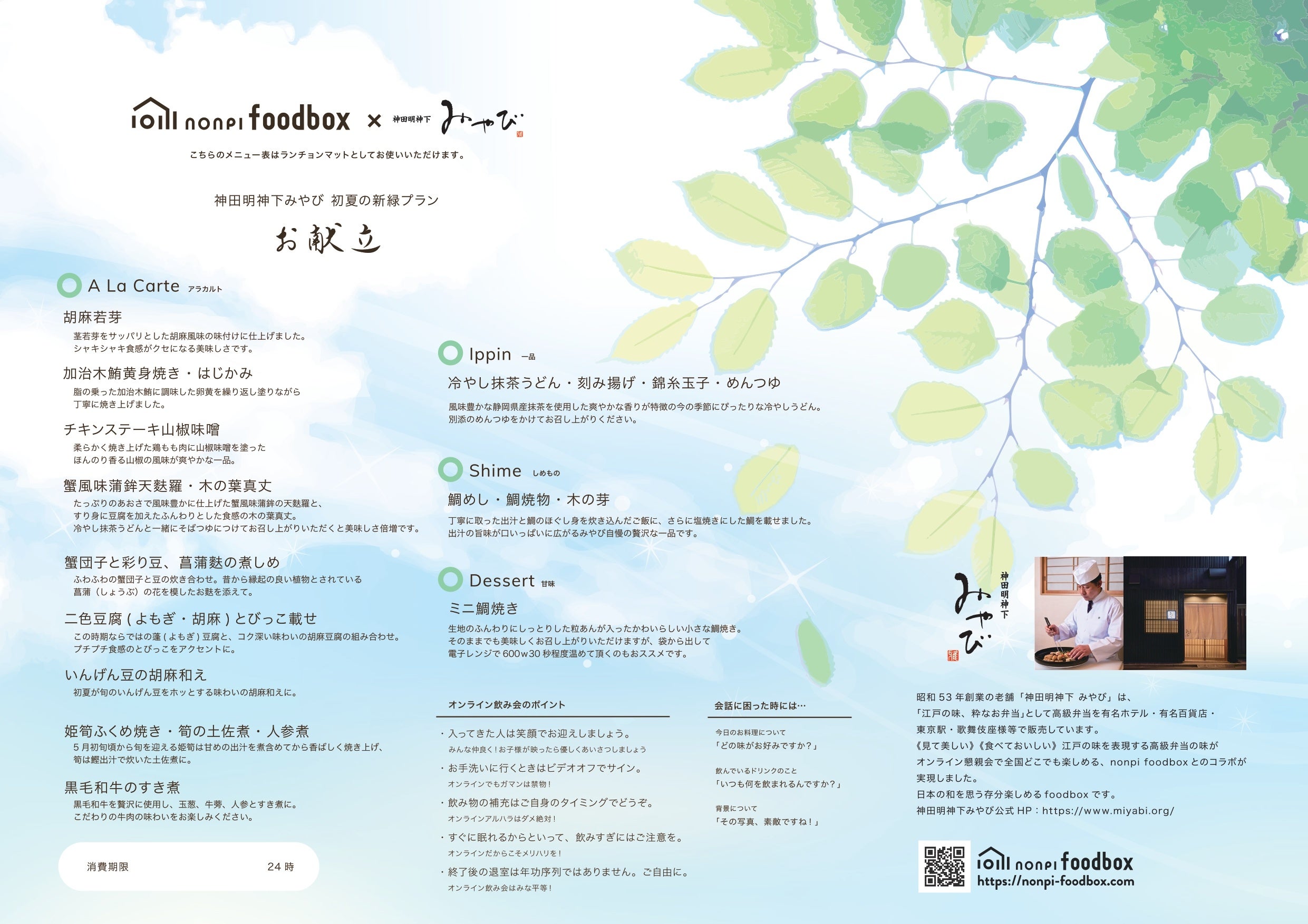 - nonpi foodbox™ 『神田明神下みやび 初夏の新緑プラン』詳細