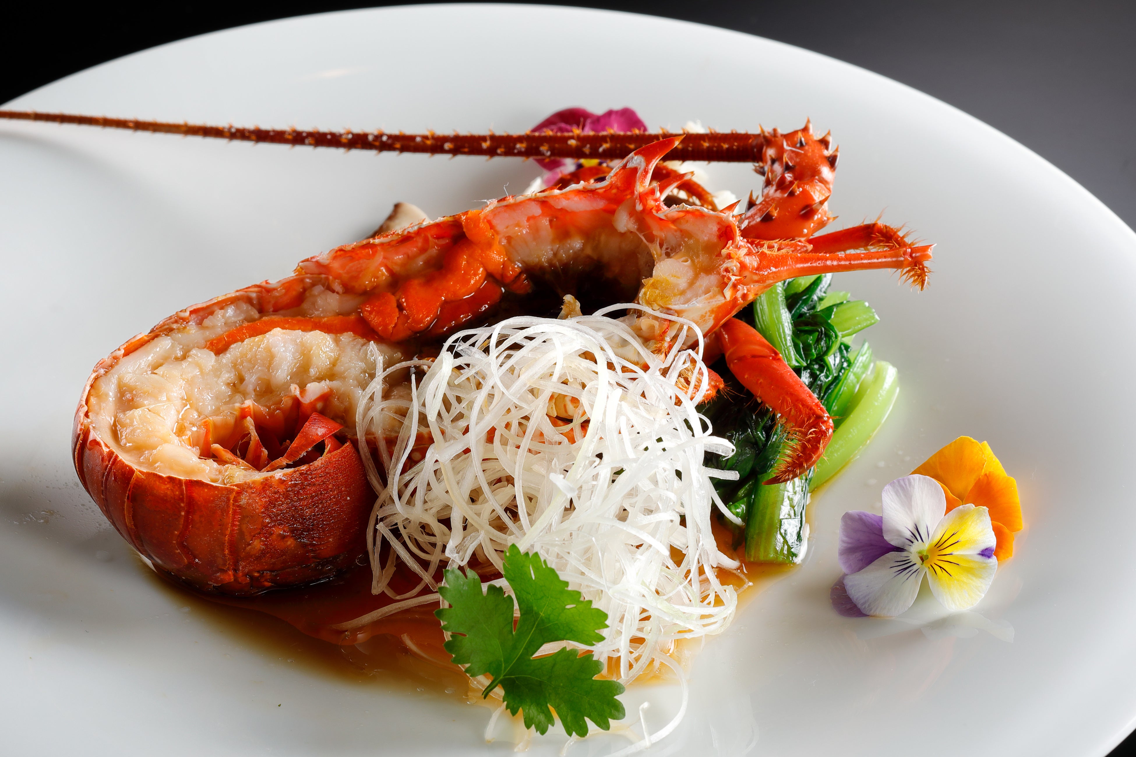 伊勢海老の半身を姿蒸しにした贅沢な一品。