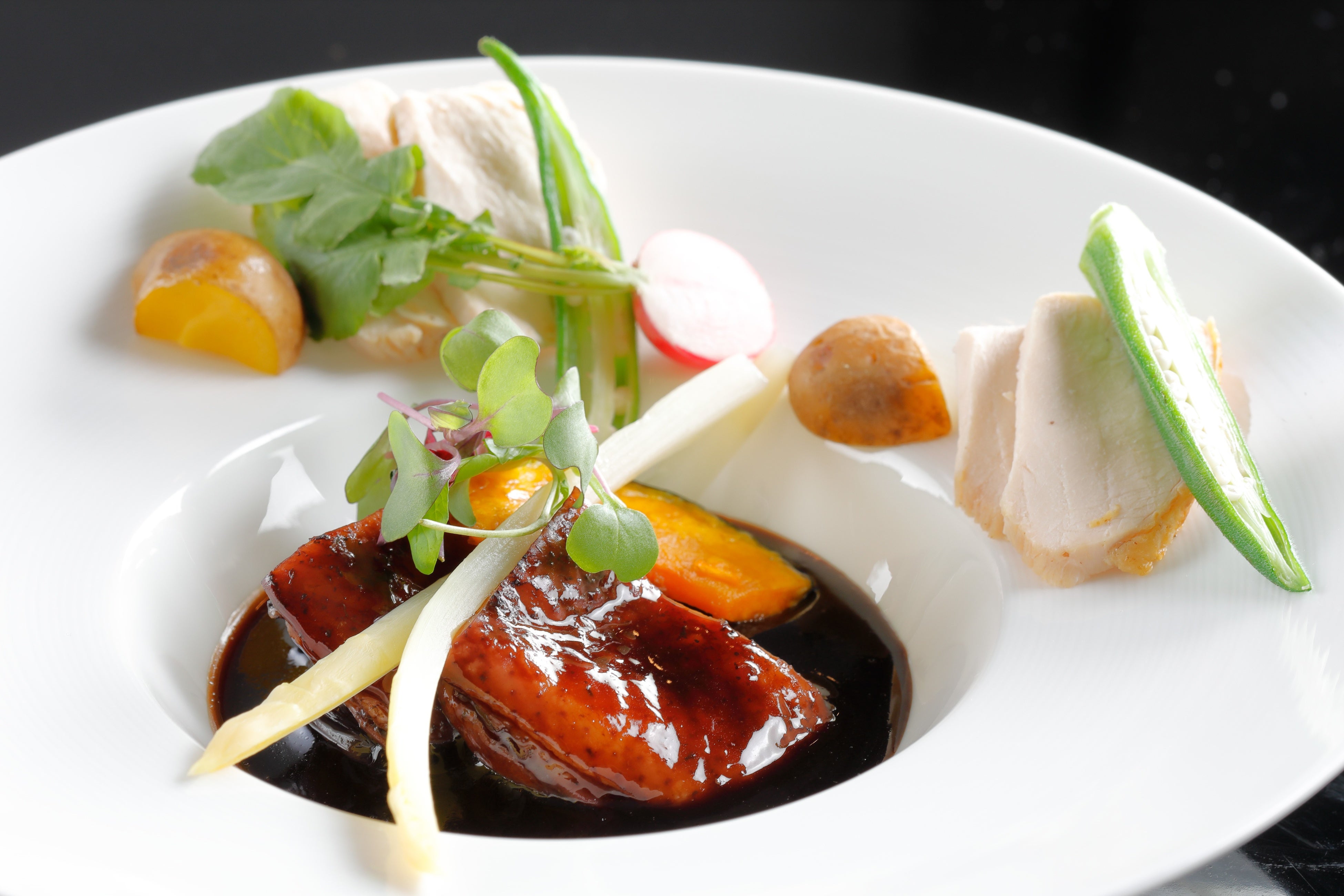 ・伊勢赤どり もも肉の赤ワイン煮と胸肉のコンフィ 彩り野菜とともに 2,600円