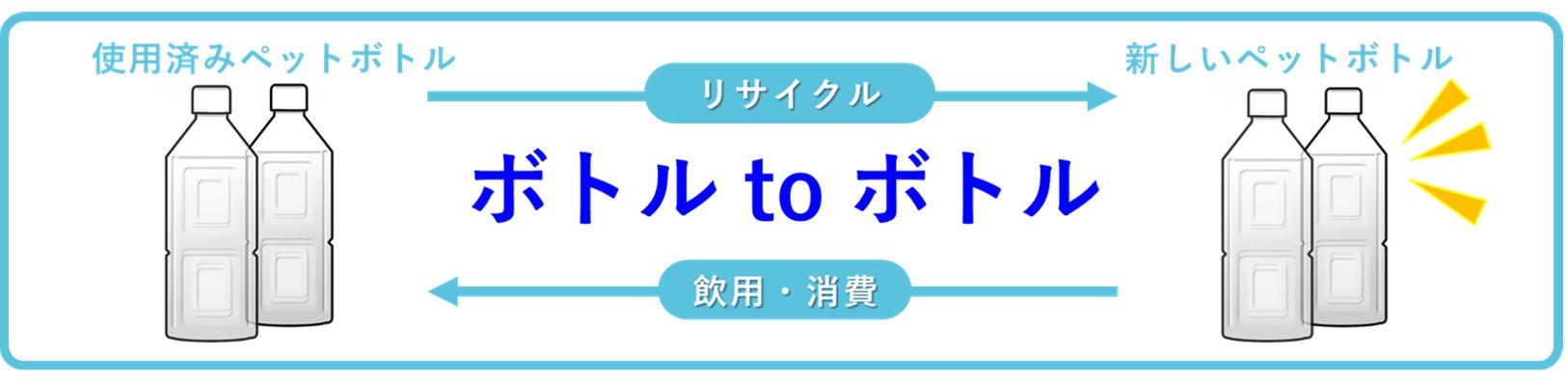 ヤオコー各店舗で回収した使用済みペットボトルのうち、ヤオコーエコセンター※2に集められるペットボトルの半数以上を当社の飲料用ペットボトル容器として再生・使用していきます。これにより、お客さまのご協力により集められた使用済みペットボトルを新たなペットボトルに生まれ変わらせる、「ボトルtoボトル」水平リサイクルを実現します。